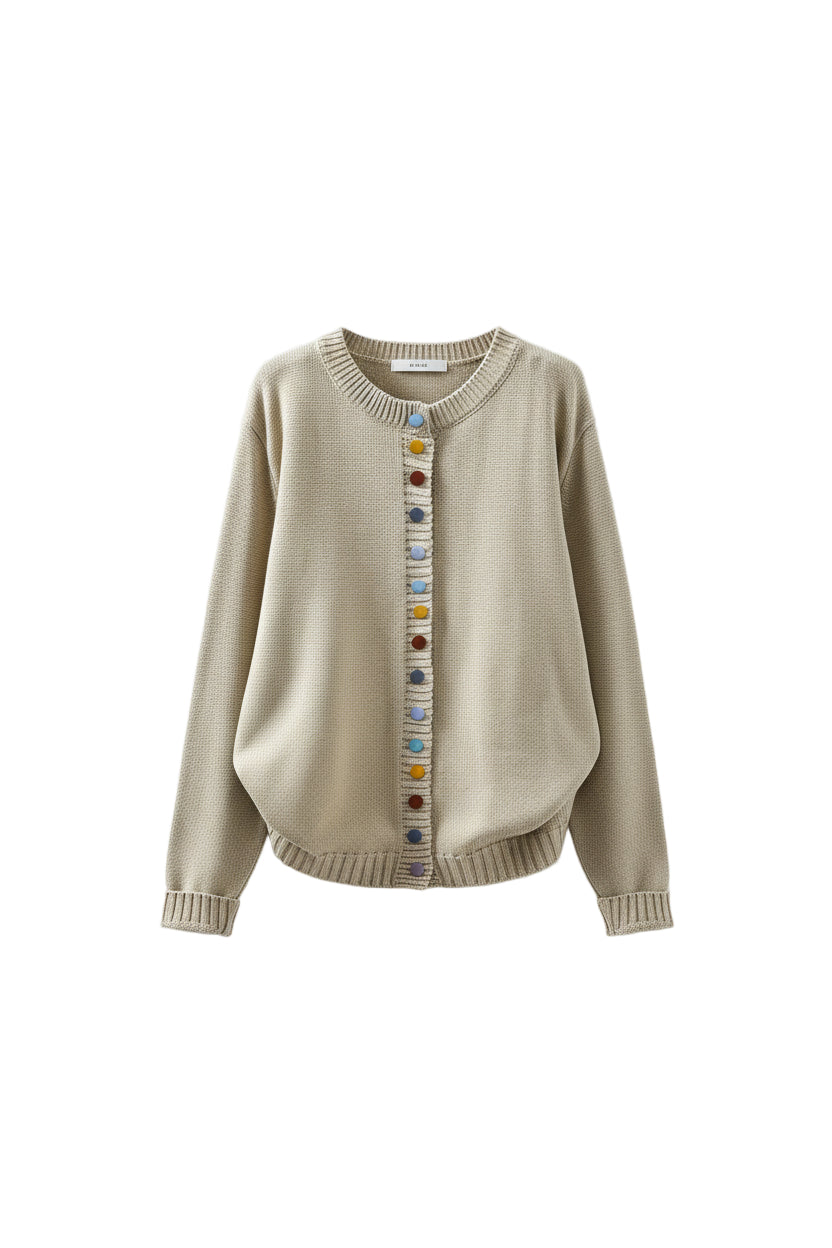 Scoprite la combinazione perfetta di comfort ed eleganza con questa giacca a maglia. Il design senza tempo con bottoni decorativi aggiunge un tocco femminile.