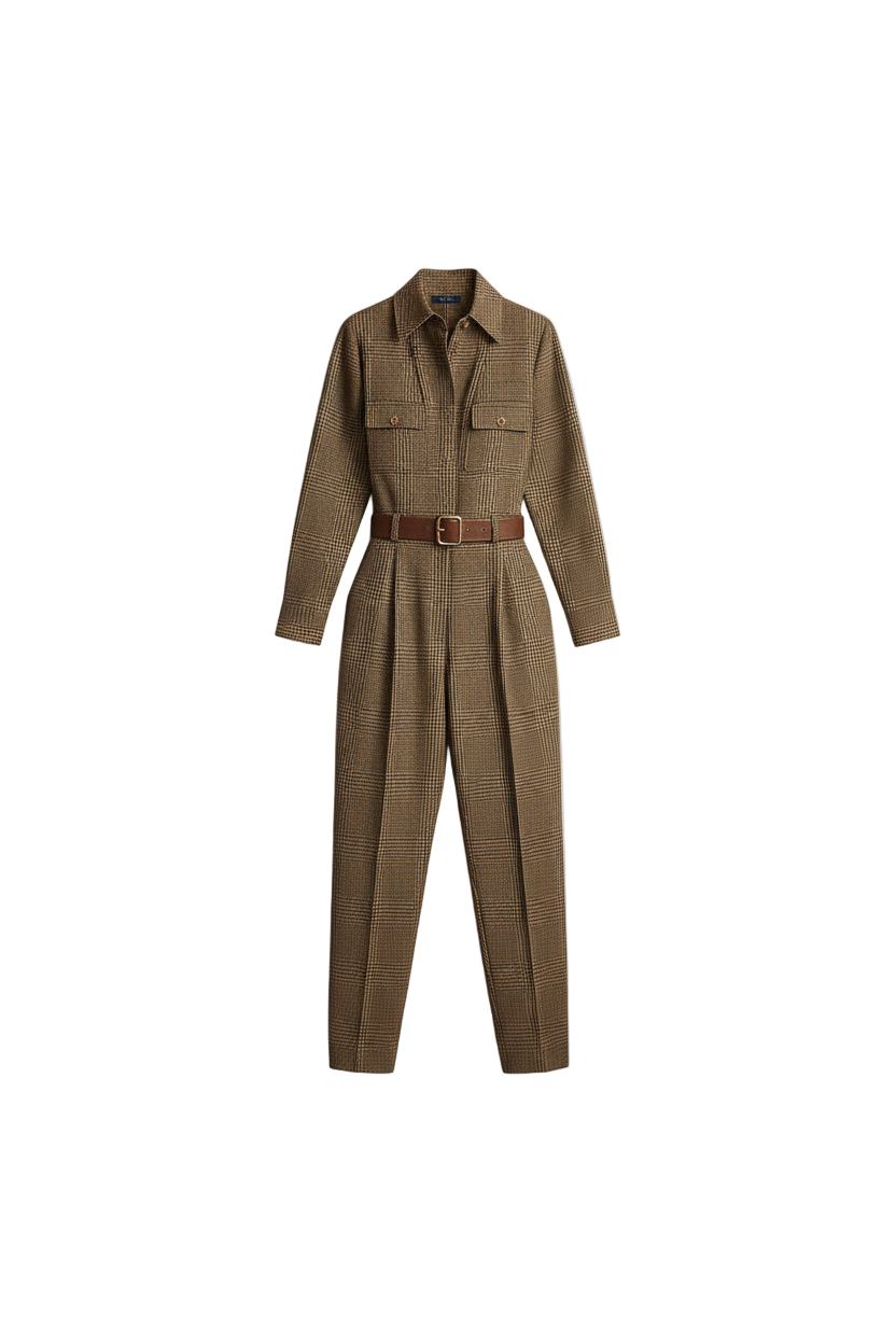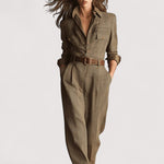 Ailina™ | Tuta utilitaria a quadri in tweed marrone elegante e raffinato