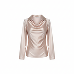 Questa elegante blusa unisce il fascino classico con la modernità per uno stile raffinato che impressiona dal giorno alla sera. Con un scollo lusinghiero e un lucentezza lussuosa, è la scelta perfetta per ogni occasione.