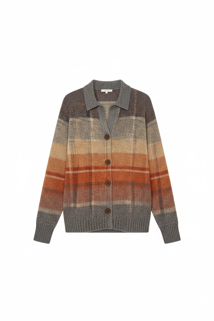 La Fleur blusa combina colori caldi come ruggine, beige e grigio chiaro in un fluido motivo a quadri che conferisce immediatamente un aspetto accogliente e naturale. Le ampie bande creano profondità, mentre i bottoni in legno opaco danno un aspetto raffinato e rilassato.