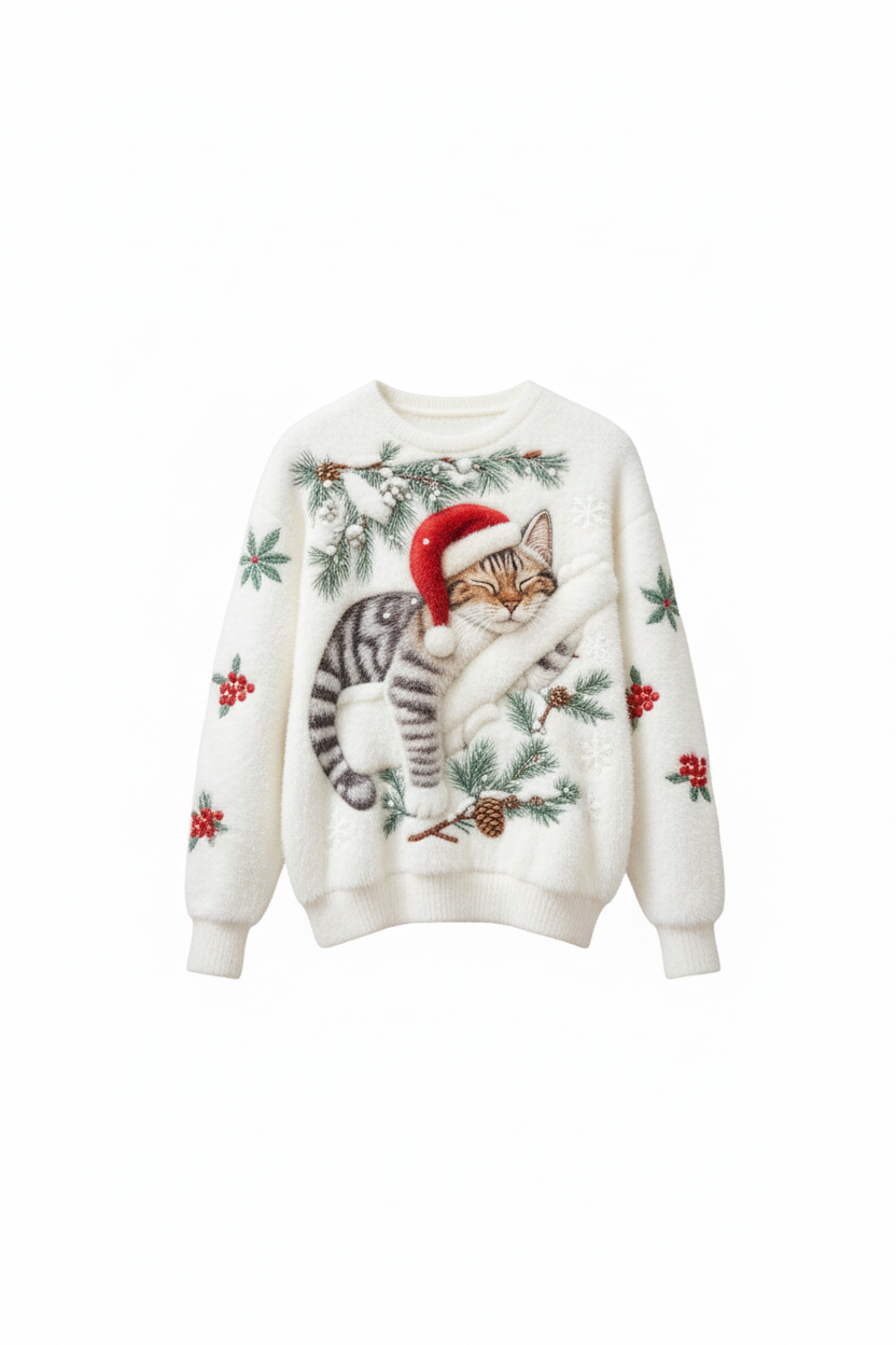 Questo accogliente maglione festivo unisce calore, fascino e un carattere stagionale, con un gatto splendidamente dettagliato che riposa in una scena invernale. La texture morbida e felpata offre una sensazione premium , rendendolo perfetto per giornate invernali rilassate o riunioni festive.
